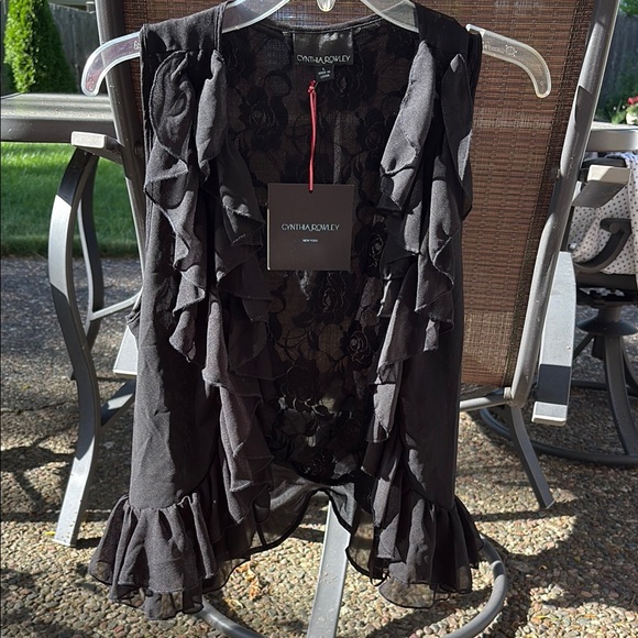 Cynthia Rowley Black Ruffle Robe Intimates