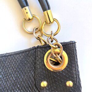 Cynthia Rowley Black Snake Reptile Textured Leather Chain Link Hobo Shoulder Bag