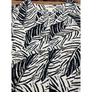Cynthia Rowley Black White 100% Linen Palm Leaf Print Button Down Tunic Top 2X