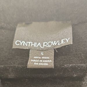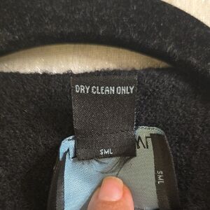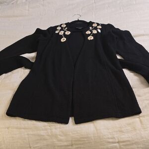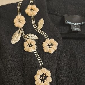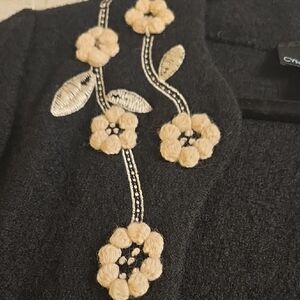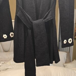 Cynthia Rowley Black Wool Dress Coat with Cream Floral Accents