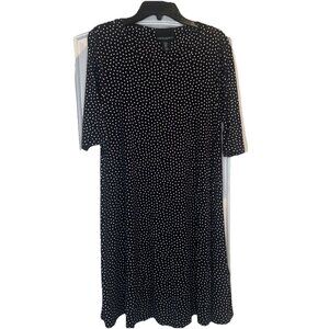 Cynthia Rowley Black w/ White Polka Dot Pullover Short Sleeve Knit Dress Sz M