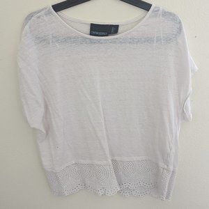 Cynthia Rowley White Blouse with Lace Detailing Size Large In good condition Hits at hips for length