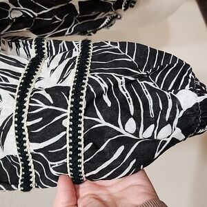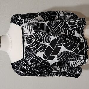 Cynthia Rowley Blouse Top Puff Sleeves Flax Linen Tropical Beach Hawaiian size L