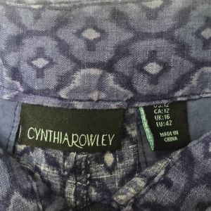 Cynthia Rowley Linen Shorts Women’s Size 12 Blue Ikat Print EUC. No rips, tears, discoloration.