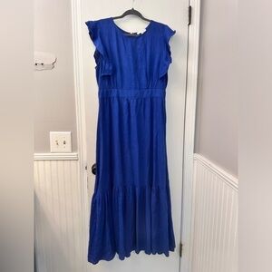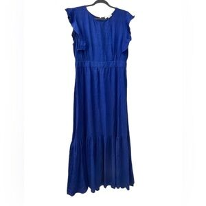 Cynthia Rowley Blue Linen Blend Ruffle Details Tier Maxi Dress~ L. Perfect condition. Light weight. Approximate measures in pictures. No flaws.