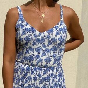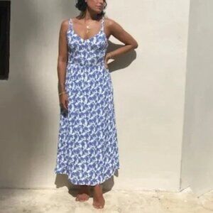 Cynthia Rowley Blue White Flower Printed Casual Summer Midi Dress