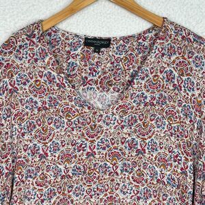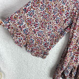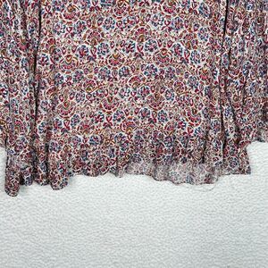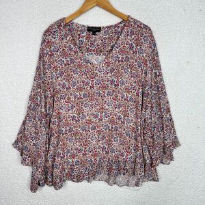Cynthia Rowley Boho Blouse 3X Viscose Paisley Floral Bell Sleeve Ruffle Hem