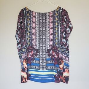 Cynthia Rowley Boho Floral Geometric Print Kaftan Tunic Top Plus Size 2X