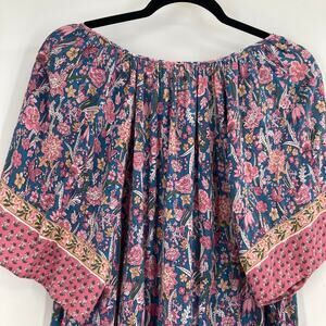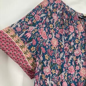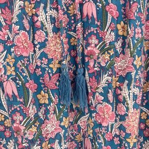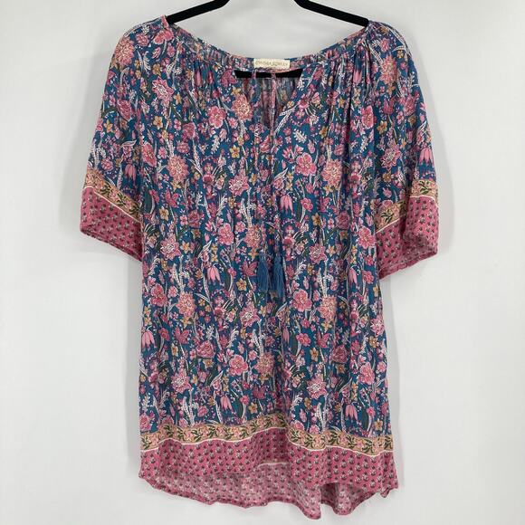 Cynthia Rowley Boho Flouncy Blue Pink Tassel Blouse Rayon Women’s 3X