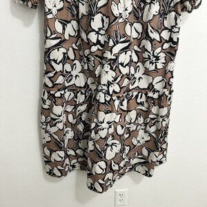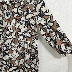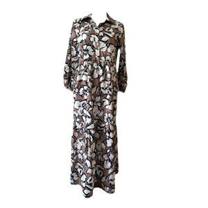 Cynthia Rowley Brown Floral Tiered Long Sleeve Maxi Dress Cotton Size L Boho
