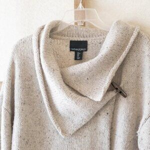 Cynthia Rowley Cardigan Sz L Marled Wool Knit Toggle Wrap Sweater Coat Pockets