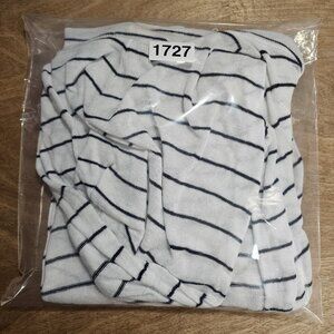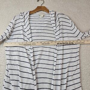 Cynthia Rowley Cardigan Women's Medium White Blue Small Stripe Hood Linen Rayon