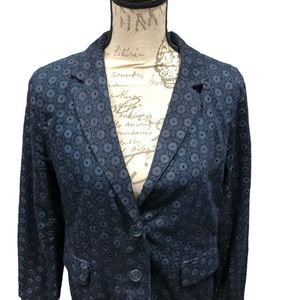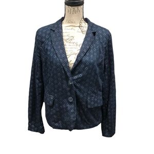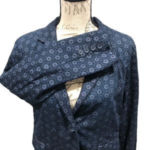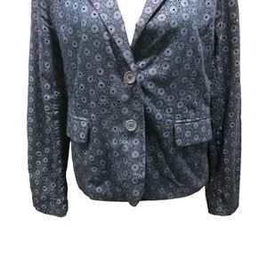 Cynthia Rowley Circle Eyelet V-Neck 2 Button Blue Cotton Blazer Jacket Sz L EUC