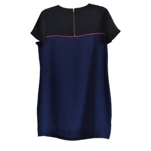 Cynthia Rowley black, navy blue with fushia piping colorblock shift dress