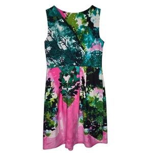 Cynthia Rowley Colorful Abstract Art Sleeveless Fit Flare Pleated Dress Size 6