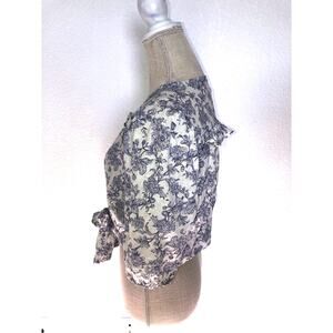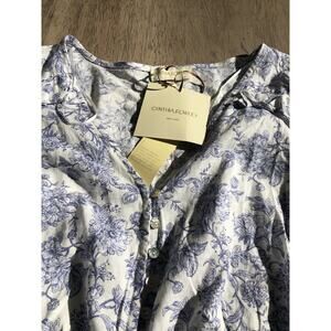 Cynthia Rowley Cottage Core Blue Floral Vintage Style Cropped Line Blouse - M