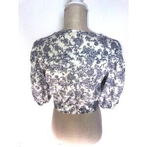 Tags: Cynthia Rowley, Linen Blend, Cottage-core, Romantic, Cropped, Puff Sleeve, Tie Waist, Floral Print, Floral, Blue and White