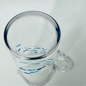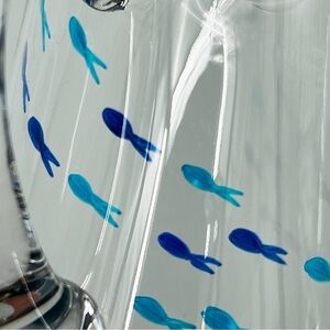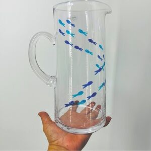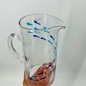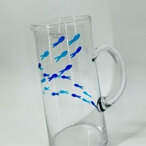 Cynthia Rowley crystal glass pitcher with a school of cut glass blue & green fish. Holds 8 cups. New Unused condition. See pictures.