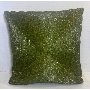 Cynthia Rowley Decorative Green Beaded Throw Pillow 18"x18" Square Shimmer Accen