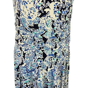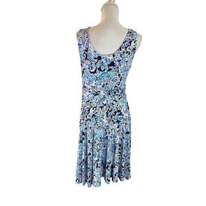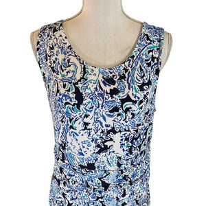 Cynthia Rowley Dress Large Stretch Knit Abstract Blue Black White Pattern Tank