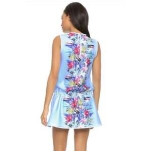 Cynthia Rowley Dress Medium Blue Floral Scuba Knit Dropped Waist Mini Cocktail, great condition. This dress is really beautiful and unique. The dress is made of a thick neoprene scuba type material.