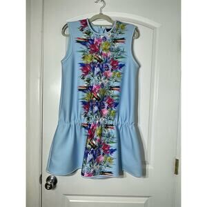 Cynthia Rowley Dress Medium Blue Floral Scuba Knit Dropped Waist Prom Cocktail