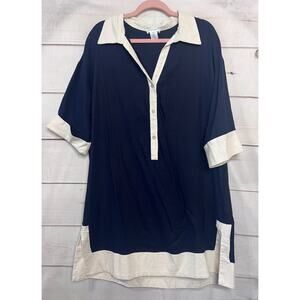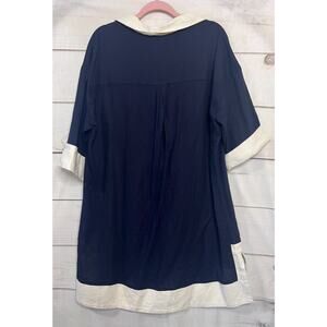 Cynthia Rowley Dress Size XL Navy Blue White Linen Easy Comfy