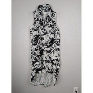 Cynthia Rowley Dress Womens XL Black White Linen Sleeveless High Low Floral Summer