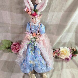 Cynthia Rowley Easter Elf Bunny Shelf Sitter Doll Tabletop Spring Home Decor Pastel Blue Dress Rose New.