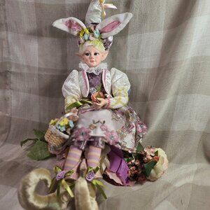 Cynthia Rowley Easter Elf Bunny Shelf Sitter Doll Tabletop Spring Decor Purple
