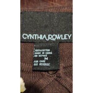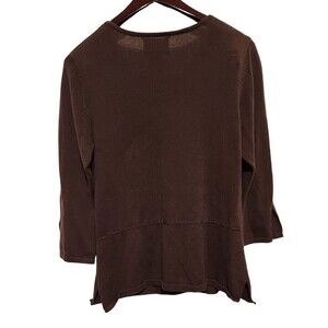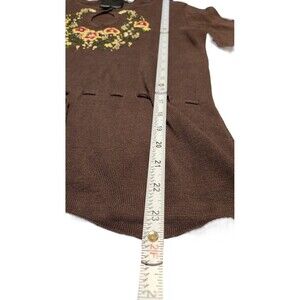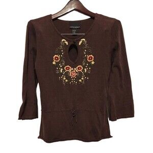 Cynthia Rowley Embroidered Brown 3/4 Sleeves Sweater Size M Front Keyhole