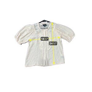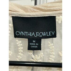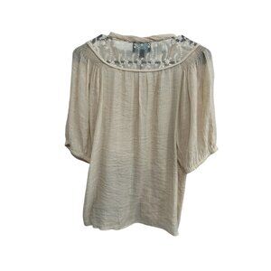 Cynthia Rowley Embroidered Lace Button Front Blouse Beige Sz Medium Floral Boho
