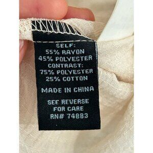 This Cynthia Rowley blouse, crafted from rayon and polyester, features elegant embroidered lace detailing. Its medium size is tailored for a flattering fit. The blouse's neutral beige color complements various styles, making it an ideal addition to any wardrobe.