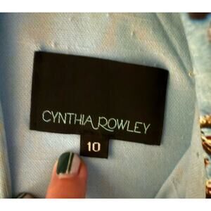 The Cynthia Rowley Floral A Line V Neck Neoprene Mini Dress in size 10 is a stylish and feminine option for women. The dress features a beautiful floral pattern in blue, with a flattering A-line silhouette and a trendy v-neck neckline. Made from neoprene, it is lined for added comfort and quality. The short dress length adds a touch of playfulness to the overall look, perfect for a summer outing or a casual day out.