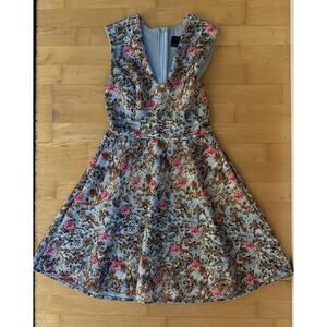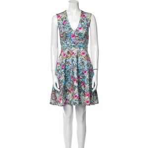 Cynthia Rowley Floral A Line V Neck Neoprene Mini Dress 10