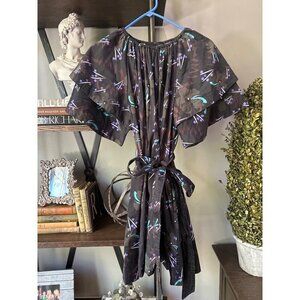 Cynthia Rowley Floral Flutter Sleeve Belted Mini Dress Black Womens Size Small
