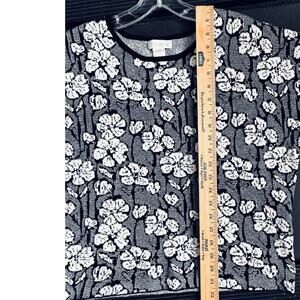 Cynthia Rowley Floral Jacquard Dolman Sleeve Knit Top Black White Medium