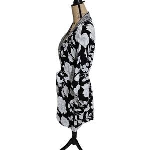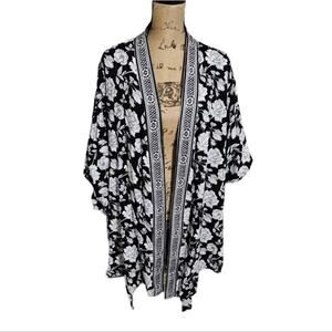 Cynthia Rowley Floral Kimono Duster Black White Flowers Cover Up Plus Size 2X
