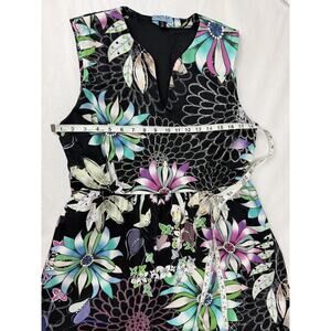 The Cynthia Rowley Floral Print Fit and Flare A-Line Dress in size 14 is a charming and versatile option for a casual occasion. The dress features a sleeveless design, notched neckline, and a zip closure for easy wear. Made from a comfortable and stretchy blend of spandex and cotton, this knee-length dress also includes pockets for added convenience. The floral pattern in multicolor and the fit and flare style make it perfect for the summer, fall, and spring seasons, embodying a cottagecore aesthetic. Easy to care for with machine washable fabric, this dress is a lovely addition to any woman's wardrobe.