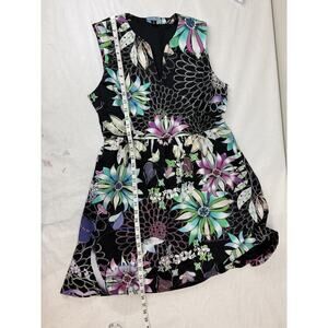Cynthia Rowley Floral Print Fit and Flare A-Line Dress Pockets Sz 14 Cottagecore