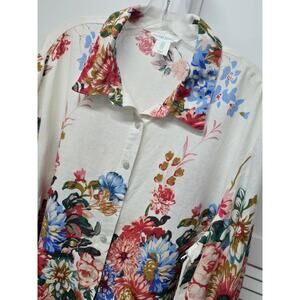 Cynthia Rowley Floral Print Shirt Blouse Women Sz 1X Long Sleeve top Linen Blend