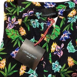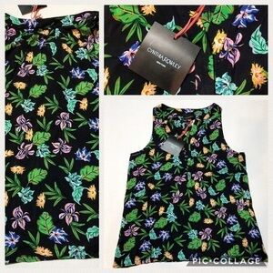 Cynthia Rowley Floral Print Sleeveless Top NWT Medium Green Purple Black Tank