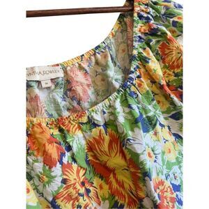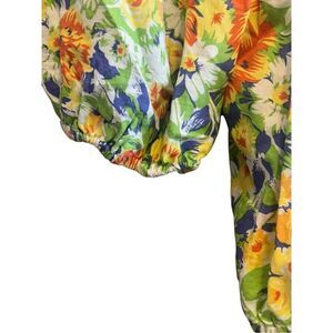 Cynthia Rowley Floral Print Top Blouse Linen Rayon Multicolor Puff Sleeve