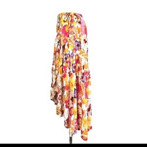 Cynthia Rowley Floral Wrap Medium Artsy Boho Hippie High-Low Hawaiian Maxi Skirt