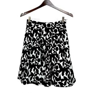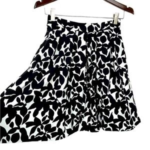 Cynthia Rowley Flowy Flare Midi Skirt. Black White Floral Print. Size XS #675
