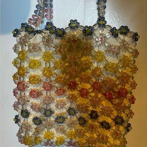 Cynthia Rowley Fun Flower purse Beaded Kandi Clear Over Lt Canvas Bag handbag