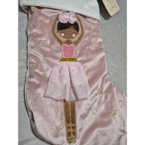 Cynthia Rowley Girls 22” Pink Velvet Ballerina Christmas Stocking Embroidered
