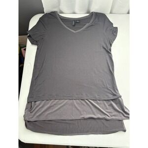 Cynthia Rowley Gray V-Neck Short Sleeve Layered Hem T-Shirt Top Medium