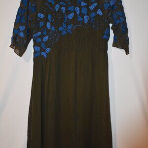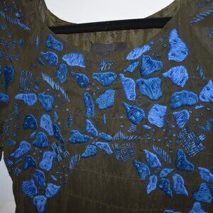 Cynthia Rowley Green Dress w/ Blue & Beaded Embroidery Size 10