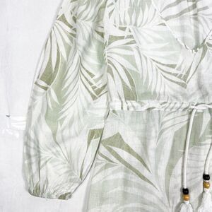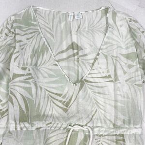 Cynthia Rowley Green Linen Blend Kaftan Midi Dress Cover Up Tropical Beach Small